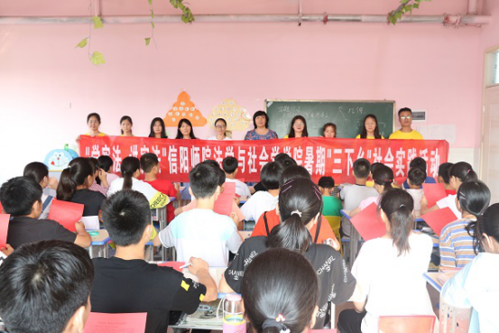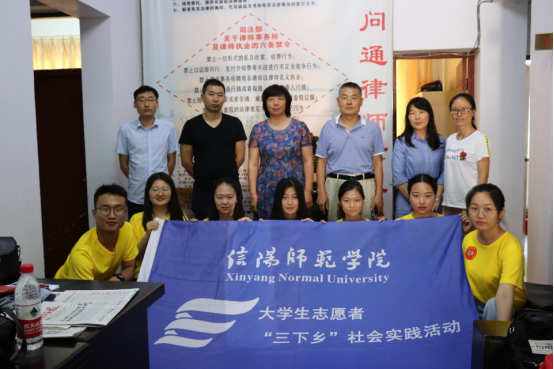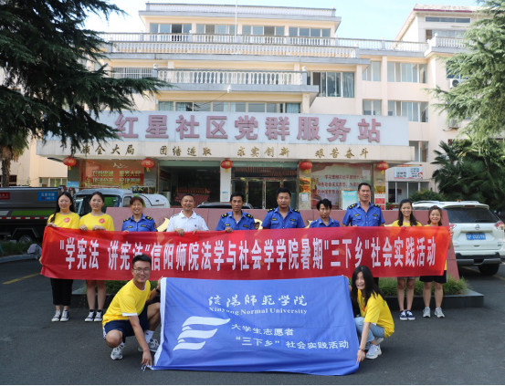 2019大学生暑期“三下乡”社会实践团成员先后深入河南问通律师事务所、罗山县东铺镇中小学、红星社区党群服务站、军队离休干部第三休养所、军韵花园社区等地开展“学宪法 讲宪法”志愿服务活动。