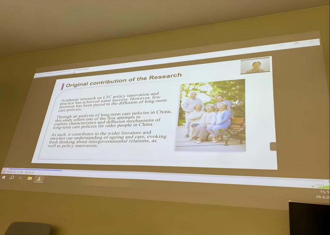 晋文静博士所在分论坛主题为“Long-term care policies and inter-generational care support in China”。在分论坛上,晋文静博士作了题目为“The Dimensions, Logic and Implications of the Diffusion of Long-term Care Policies for Older People in China:Content Analysis Based on Policy Diffusion Theory”的会议报告,介绍了中国长期照护政策的创新、扩散及其内在机制。